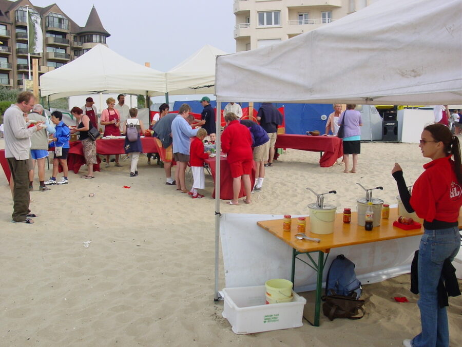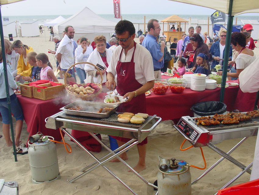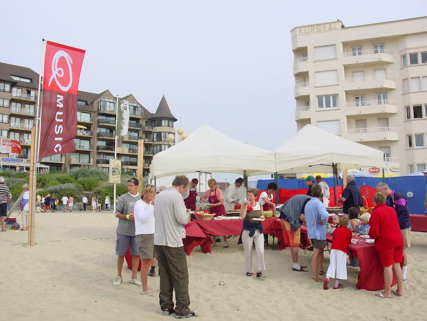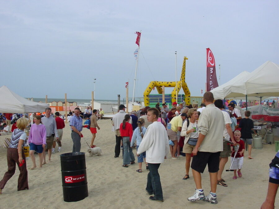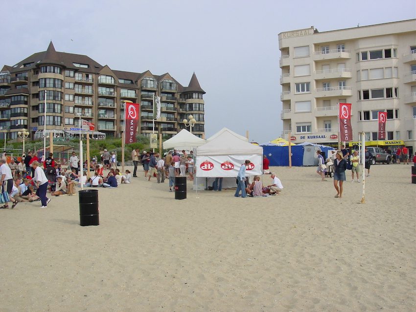 Erwin Deckers, deze week nog totaal onverwacht uit het verborgene opgedoken als presentator bij Willy, was toen Grote Chef Q. Sukkelde de commerciële zender in 2003 nog van de ene kust Q-BBQ naar de andere, waarbij het voor de toeristen niet altijd duidelijk was wié, wàt kwam doen op dat stukje strand, in 2004 keek je er niet meer naast. Een jaar eerder was hun aanwezigheid nog beperkt tot gratis BBQ-vlees met sausjes, frisdrank en een potje standvolleybal. In De Panne gingen Tom Decouttere en ikzelf toen ook al een kijkje nemen. Veel volk was er niet. Zoals je op onderstaande foto’s kan zien.
