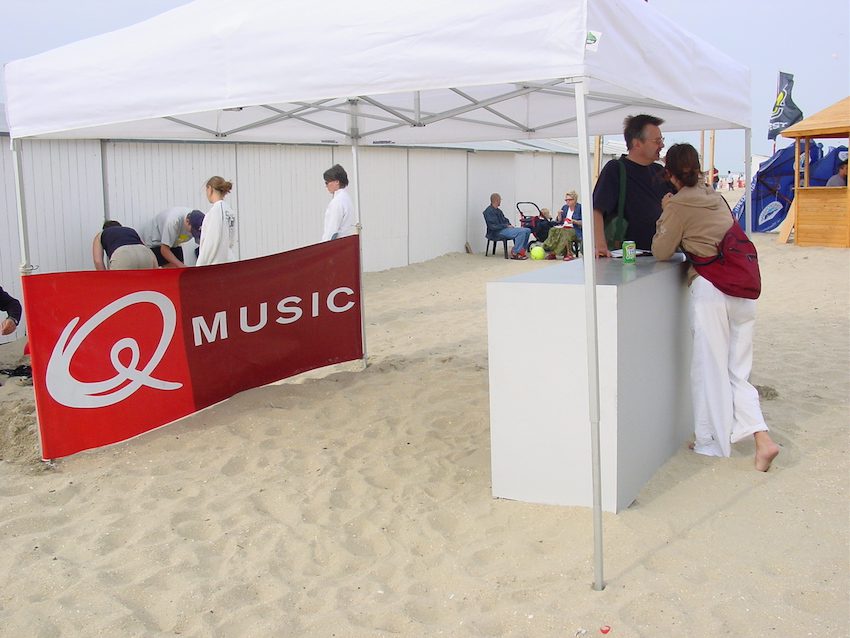 Van zodra de maanden juli en augustus er aan komen, kan je er gif op innemen dat Radio X, Kanaal Y en Studio Z hun opwachting maken ergens tussen Knokke en De Panne. Qmusic gaf voor het eerst gehoor aan deze lokroep in 2004. Het commerciële station zocht toen letterlijk het water op. En ik was erbij. Vanuit mijn vakantiebestemming in De Haan, met tram en trein naar de Koningin der badsteden gespoord.