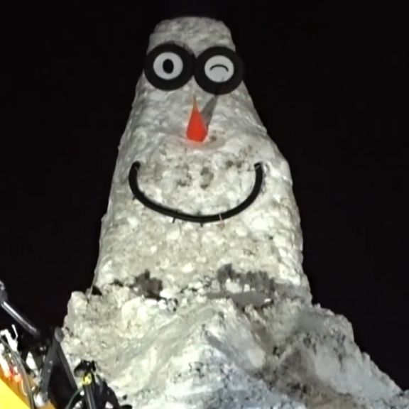 Om gelijk het record weer terug te pakken, gingen sneeuwpop-bouwers in Espelo gelijk aan de slag. Ze veegden met machines alle sneeuw uit de buurt bij elkaar om een zo hoog mogelijke sneeuwpop te maken.