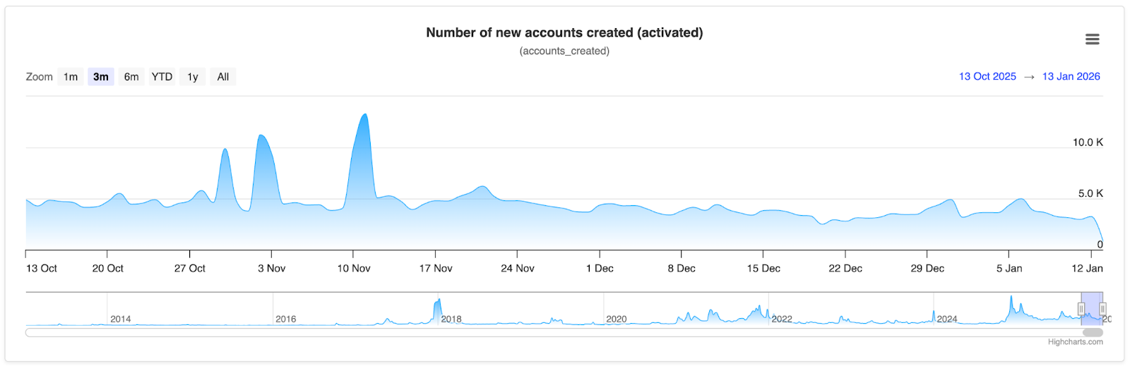 Aantal nieuwe XRP-accounts in de afgelopen 3 maanden. – Bron: XRP Scan