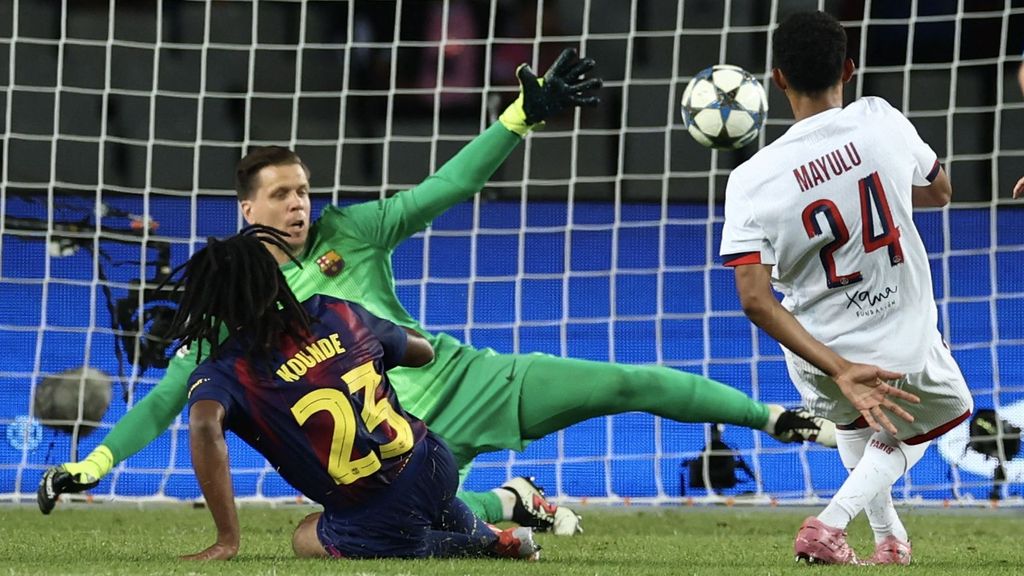 De Jong kreeg geel omdat hij op de hak stapte van Nuno Mendes en diezelfde Mendes gaf even later de assist bij de 1-1 van Senny Mayulu. Pau Cubarsí zat mis en de spits van PSG stuurde vervolgens Szczesny de verkeerde hoek in.