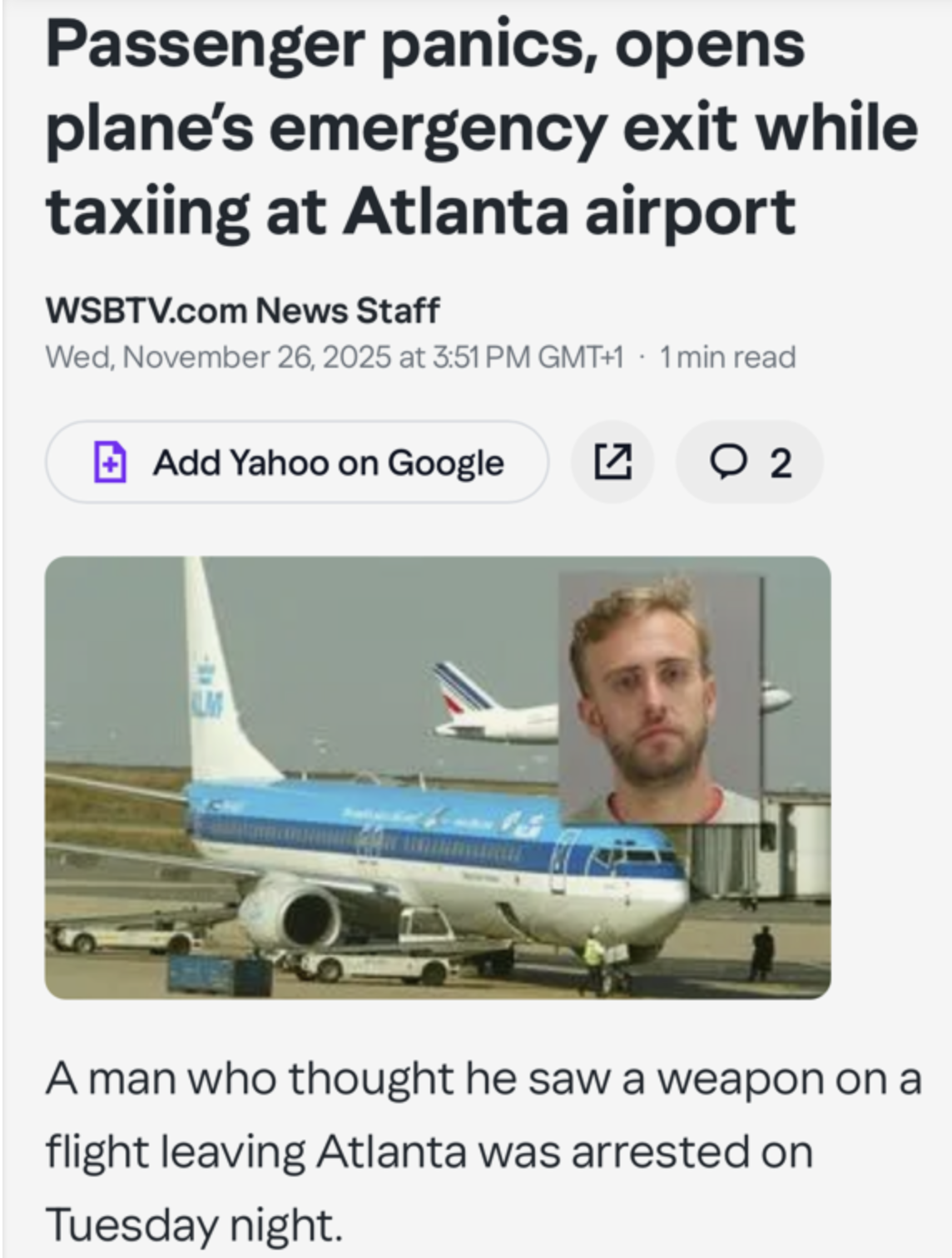 Van Heertum werd al eerder in Amerika aangehouden toen hij een nooddeur van een taxiënd vliegtuig opende en riep dat hij een vuurwapen had gezien. De glijbanen van het vliegtuig werden daarbij geopend. De Amerikanen hebben Van Heertum uiteindelijk het land uitgezet.