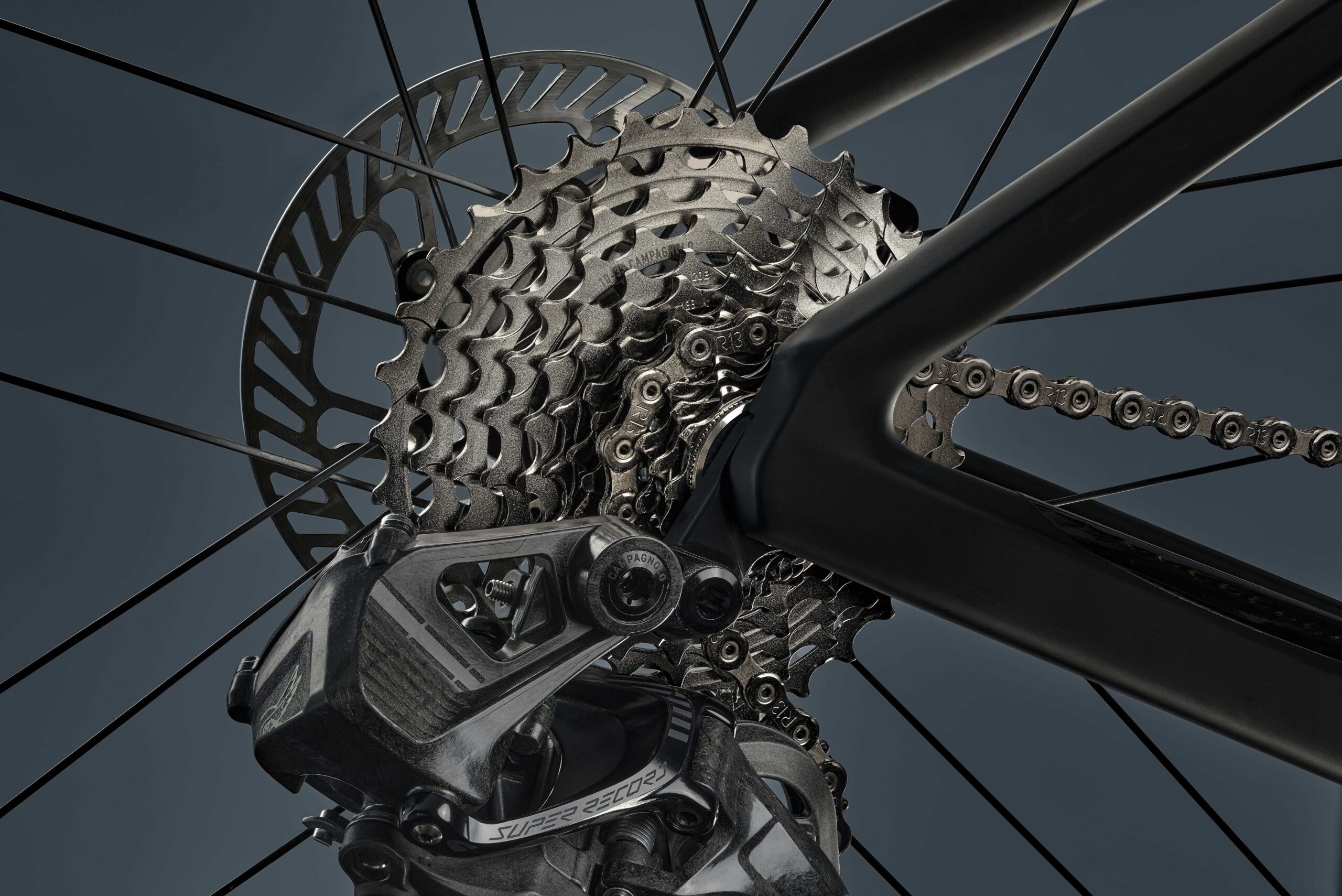Nadat de groepset in de Giro d’Italia voor het eerst was te zien, presenteerde het Italiaanse merk de vernieuwde Super Record 13 deze zomer officieel. Enkele jaren geleden spraken we nog vol verbazing over het twaalfde kransje wat, maar met hun nieuwste groepset breidde Campagnolo de cassette uit tot dertien versnellingen. Daarmee waren ze de eerste van de drie grote groepsetfabrikanten (naast Campagnolo zijn dat SRAM en Shimano) die een 2×13-groepset presenteerden.