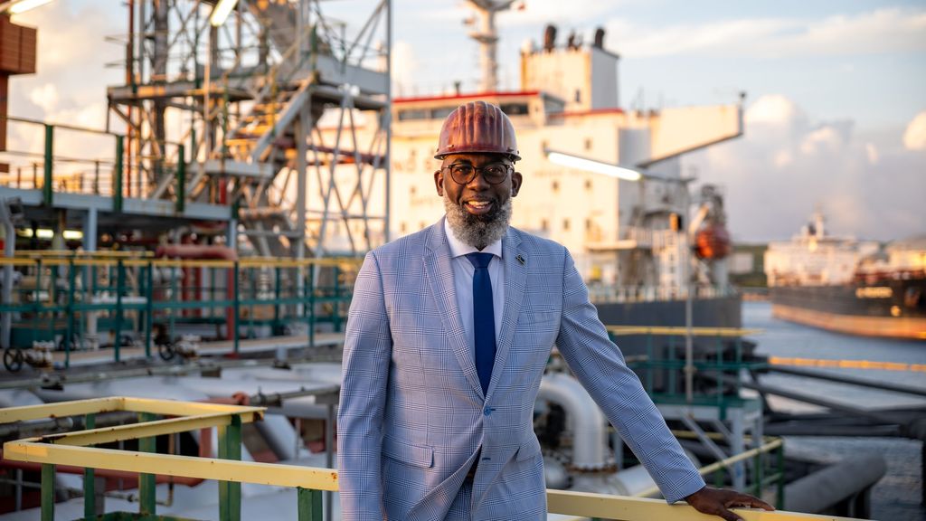 Pisas liet zich breed glimlachend met de olietanker fotograferen. Hij ziet het als een goede impuls voor de stilgevallen olie-industrie op het eiland.