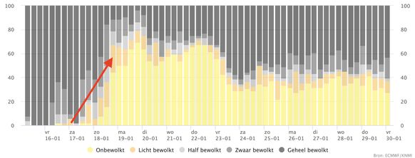 15 januari 20:57Vandaag was zacht voor de tijd van het jaar, met het op veel plaatsen grijs en regenachtig weer. Ook vanavond en vannacht blijft het bewolkt en valt er af en toe nog wat regen. Komend weekend begint eveneens zacht, maar vanaf zondag krijgen we duidelijk te maken met een kouder, maar zonniger weerbeeld.