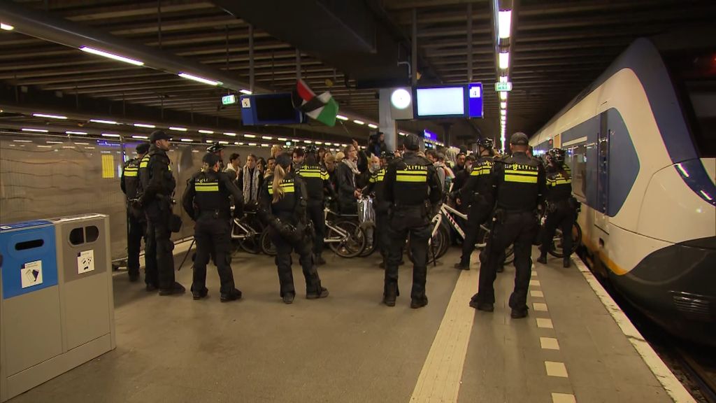 Eerder op de dag greep de mobiele eenheid in in de buurt van het ministerie van Buitenlandse Zaken in Den Haag. De betogers trokken daarna naar het treinstation. Daar blokkeerden ze ook tramsporen waardoor een aantal lijnen er niet kon stoppen.