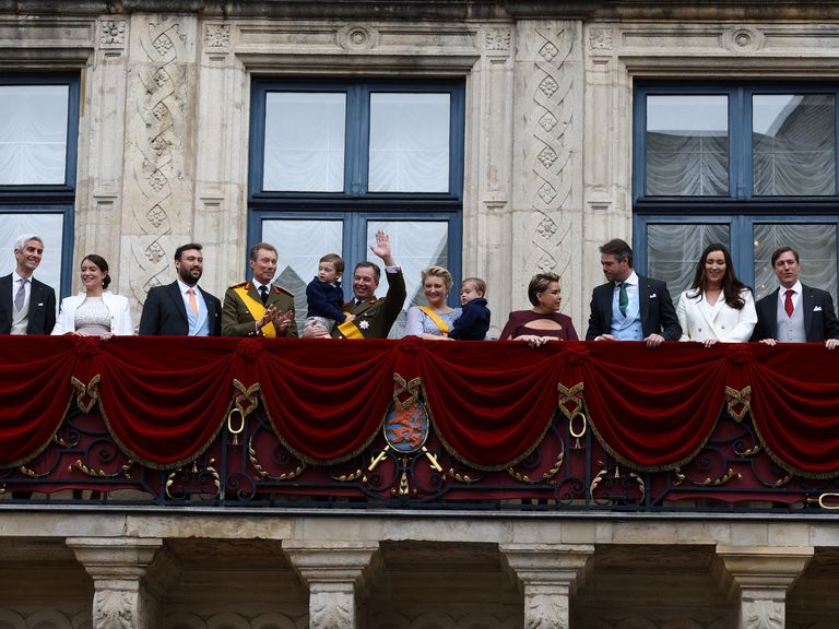 • ReutersDe Nederlandse koninklijke familie en voormalig groothertig Henri op het paleisbalkon