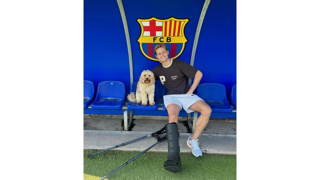 Instagram/Frenkie de JongFrenkie de Jong (met enkelblessure) en hond Jagger de Jong in 2023
