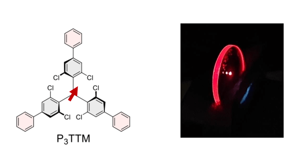 P3TTM is een zogenaamd spin-radicaal organisch halfgeleider. In het hart van het molecuul bevindt zich één ongepaard elektron, dat unieke elektronische en magnetische eigenschappen geeft.