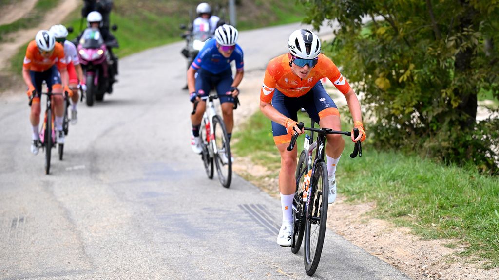 De – op papier – ijzersterke Nederlandse ploeg voerde het tempo op deze klim dan ook flink op, mede dankzij beulswerk van Femke de Vries op kop. Zij dunde het peloton uit, waarna kopvrouw Vollering een aanval plaatste.