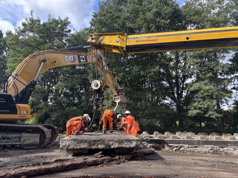 • NOS / Chiem BaldukDe brokstukken worden via het resterende oude spoor afgevoerd