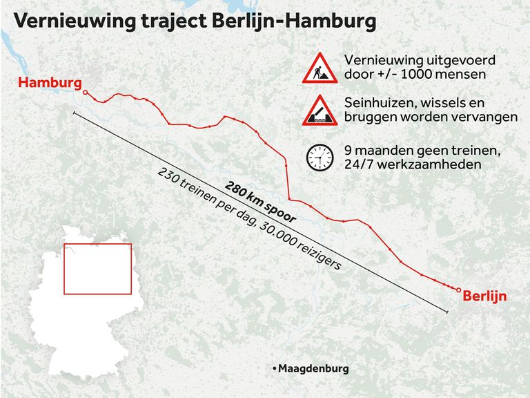 Op dit moment vindt zo’n modernisering plaats tussen Berlijn en Hamburg, de twee grootste steden van Duitsland. In negen maanden tijd wordt vrijwel het gehele spoor, van rails en wissels tot bovenleidingen en viaducten, opnieuw aangelegd. Sommige seinhuizen stammen nog uit het Duitse Keizerrijk (1871-1918).