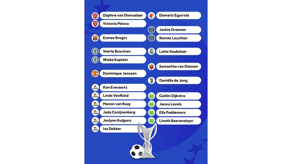 Bekijk hier alle Nederlandse speelsters in de Champions League dit seizoen: