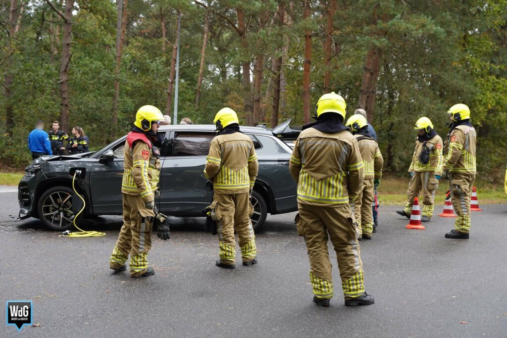 De brandweer kwam ter plaatse om de situatie veilig te stellen. In de elektrische auto werd een stekker geplaatst om het voertuig spanningsvrij te maken en te beveiligen tegen onverwachte inschakeling.