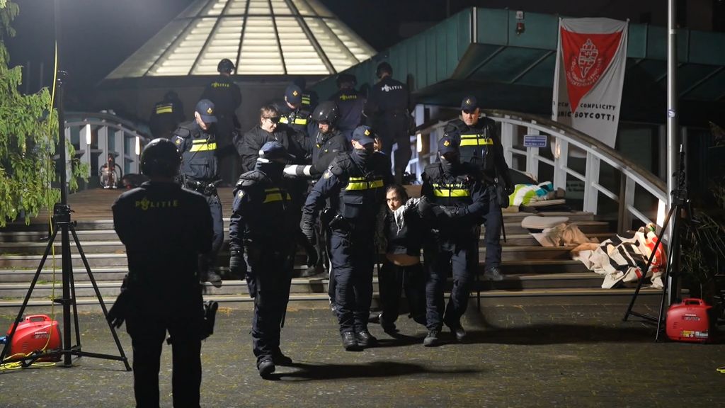 Op de campus van de Radboud Universiteit in Nijmegen is de politie begonnen met het weghalen van een groep pro-Palestijnse demonstranten die daar een gebouw bezet houden.