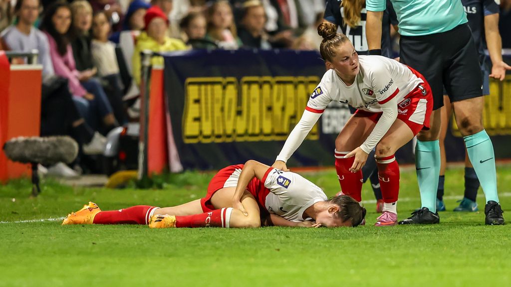 Pro ShotsLotje de Keijzer moest met een ogenschijnlijke zware blessure het veld verlaten