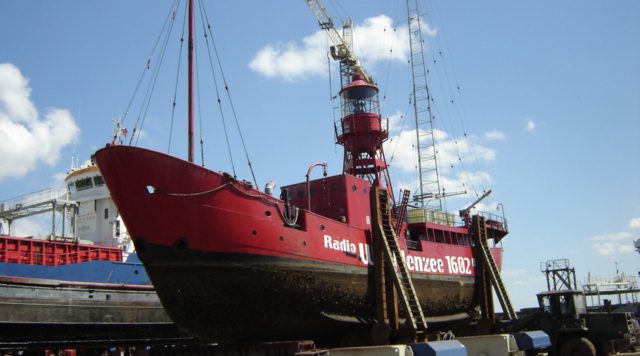 We blijven nog even bij de dobberende radio, want de Nederlandse stichting Vrienden van het Lichtschip is gestart met een crowdfunding om de Jenni Baynton, afgemeerd in Harlingen, een werfbeurt te kunnen geven. Het laatste zendschip van Nederland was in 2009 voor het laatst op de werf (foto). Sindsdien zagen de vrijwilligers kans het schip naar een hoog niveau te tillen qua mogelijkheden, veiligheid en zeewaardigheid. Nu is men echter toe aan het stuk van het schip waar de vrijwilligers niet bij kunnen: het onderwaterschip. Het streefbedrag van 25.000 euro zou voldoende moeten zijn om haar voor de komende jaren klaar te maken. “Als we volgend jaar het schip weer op zee verankeren willen we graag dat ook onder water alles netjes in de verf staat”, aldus de verenging. De crowdfunding vind je hier. De vindt de Facebookpagina van het radiolichtschip hier.