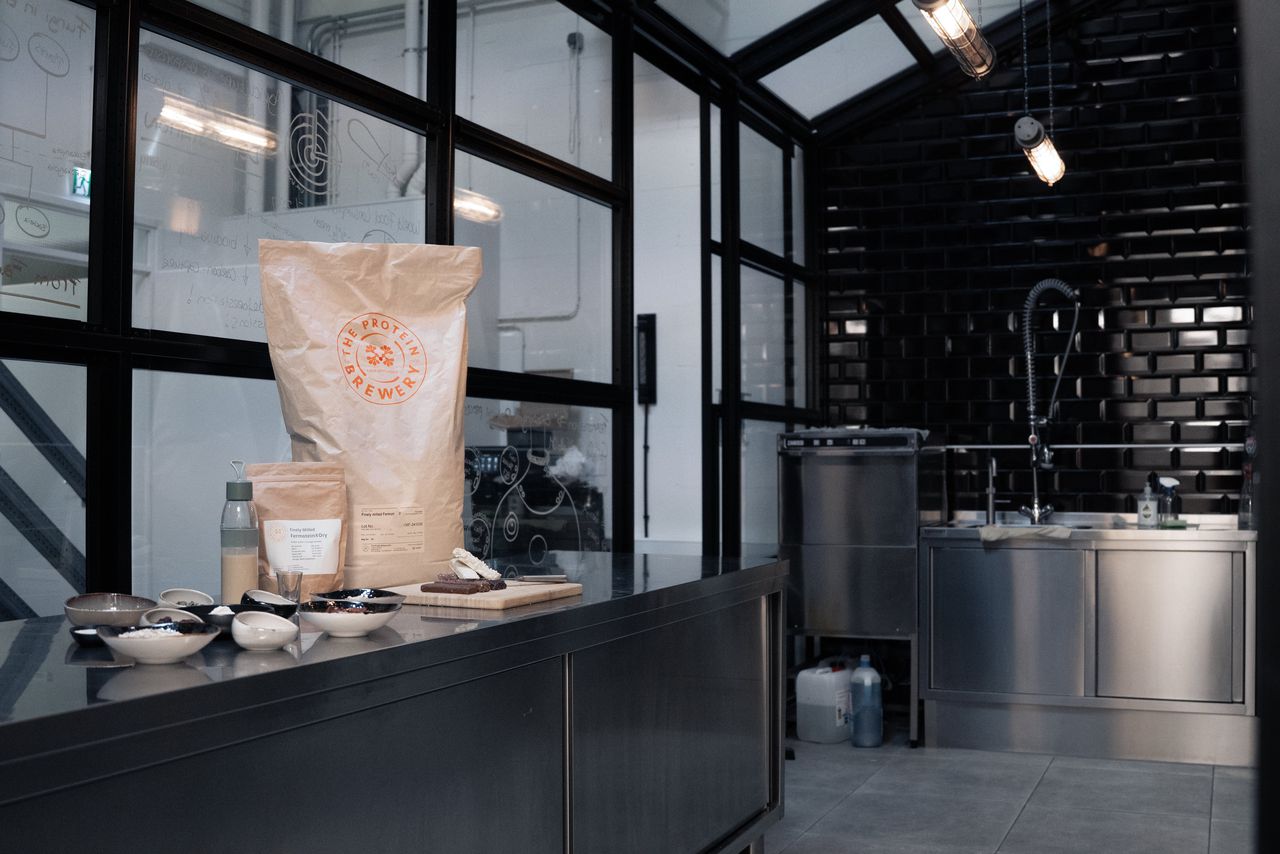 Aan de buitenkant van bedrijfspand langs de Noordelijke Rondweg in Breda steken drie grote stalen kweekvaten boven het dak uit. Binnen staan oorverdovende machines die centrifugeren, drogen, hakken en malen. Stofjas, schoenen met stalen neuzen, helm en oordoppen verplicht. The Protein Brewery ziet eruit als een fabriek – het ís een fabriek, in een pand dat ook een autoshowroom had kunnen zijn.
