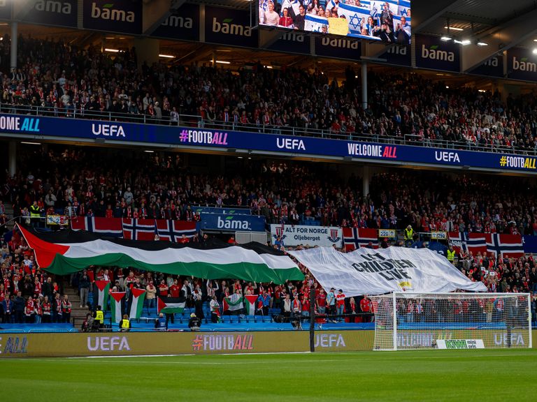 Pro-Palestijnse demonstranten hebben in aanloop naar het WK-kwalificatieduel tussen Noorwegen en Israël (5-0) een protestmars gehouden naar het stadion. Volgens de Noorse publieke omroep zijn er zo’n duizend demonstranten aanwezig.