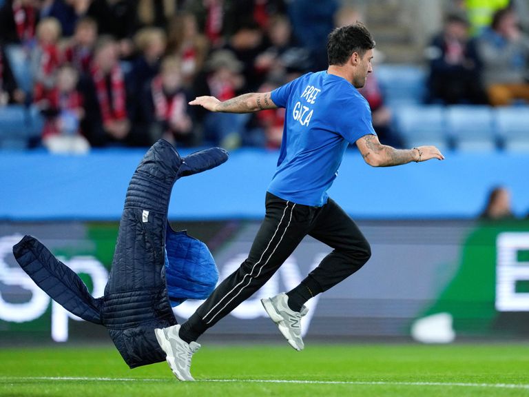 • ReutersEen man met een “Free Gaza”-shirt rent het veld op