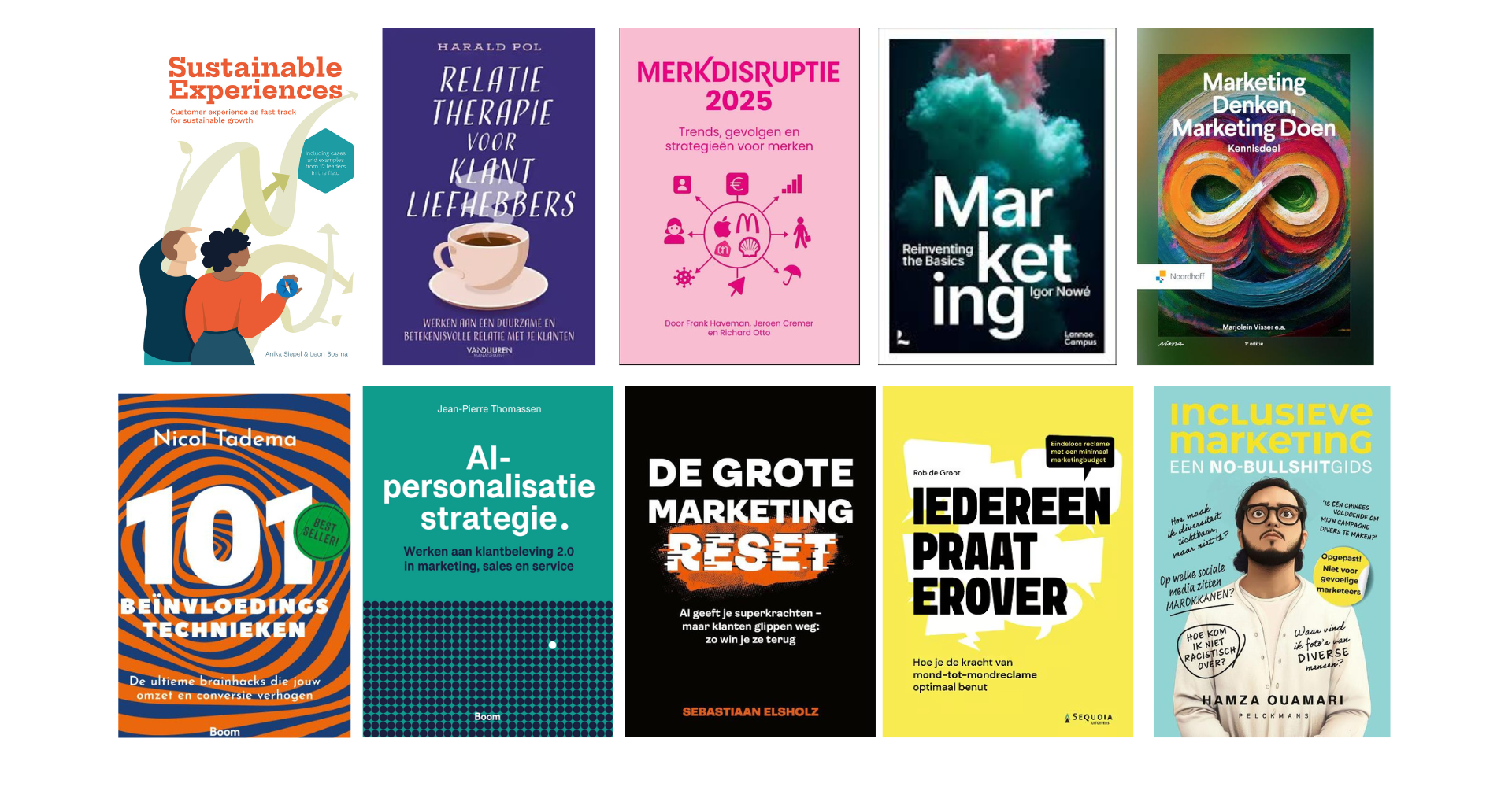 De jury spreekt van een breed palet aan invalshoeken die stuk voor stuk actuele marketinguitdagingen adresseren. Van technologische innovaties zoals AI en marketing automation tot maatschappelijke thema’s als inclusie en duurzaamheid. Ook de klassieke thema’s als merkpositionering, klantgerichtheid en strategische marketing worden op vernieuwende wijze benaderd.