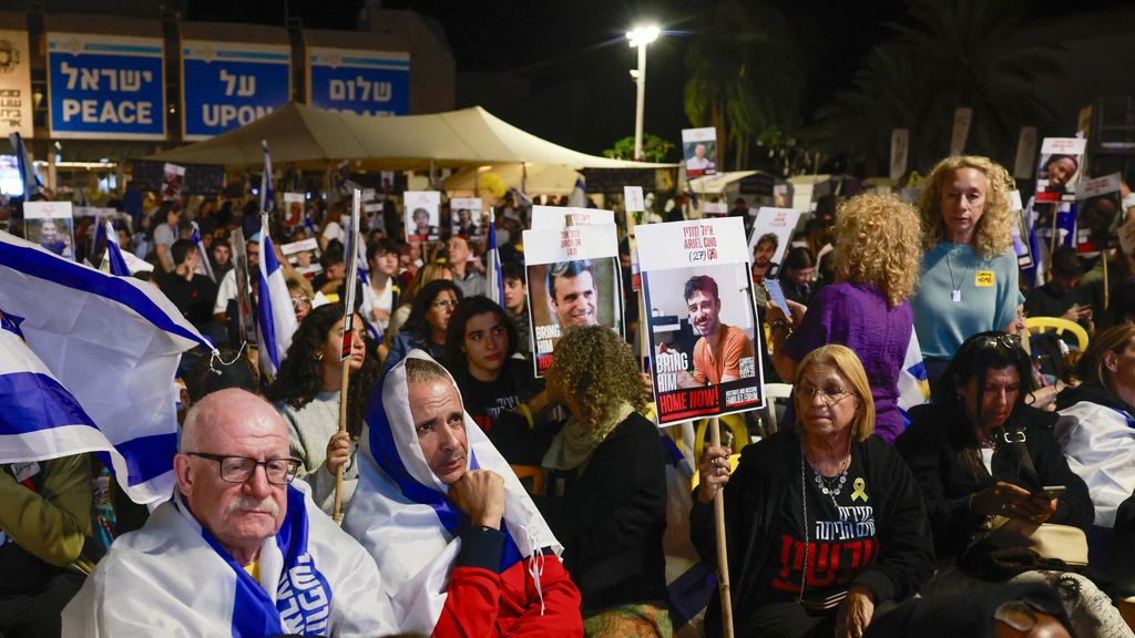 Op het ‘Gijzelaarsplein’ in Tel Aviv is het alweer vroeg druk. Mensen hebben zich er verzameld in aanloop naar de verwachte vrijlating van Israëlische gijzelaars door Hamas. Veel mensen hebben Israëlische vlaggen bij zich.