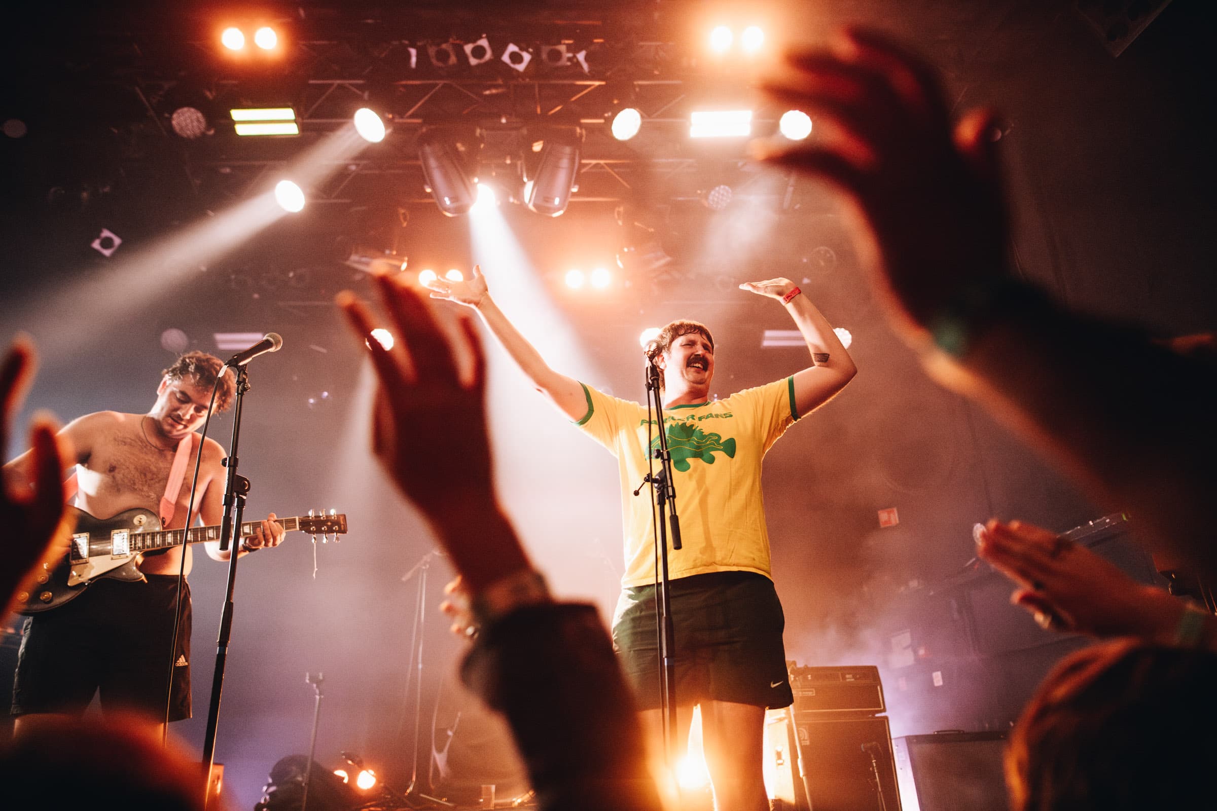 Bij Sports Team is het rumoerig en rommelig als altijd – britpop met een knipoog en inmiddels een La Trappe-biertje te veel. Terwijl de band zijn gebruikelijke chaos ontketent, botsen we in Main op Jeppe Rottier, bassist van Grote Geelstaart. Uit nieuwsgierigheid vragen we hoe ze eigenlijk aan die naam kwamen. Hij kijkt ons verbaasd aan: ‘De bandnaam is niet verzonnen’, zegt hij. ‘Die vis bestond al lang.’ Oké dan.