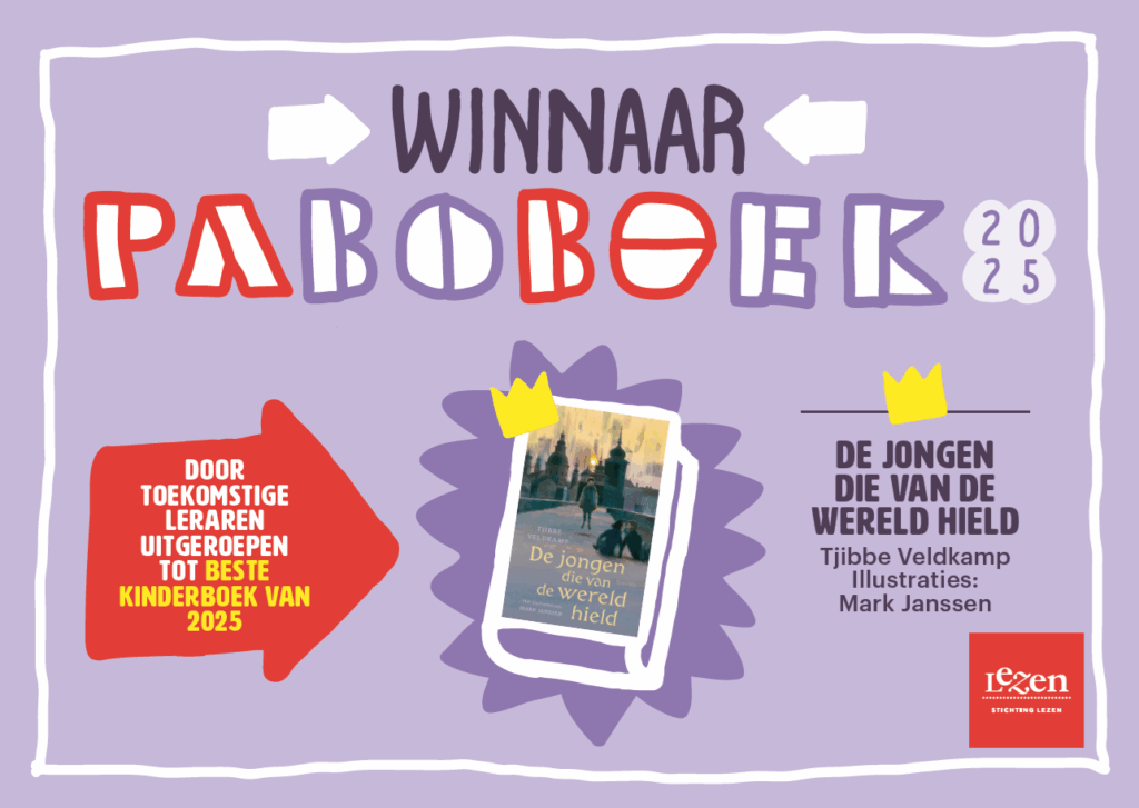 De jongen die van de wereld hield van Tjibbe Veldkamp (met illustraties van Mark Janssen) is door pabostudenten uitgeroepen tot Pabo Boek van het jaar 2025. Het boek over de jongen Adem, die zijn vader en moeder weer bij elkaar wil brengen, kreeg meer dan de helft van de stemmen en is daarmee de overtuigende winnaar. De andere genomineerden waren De reis van Manie Schaafijs (Zindzi Zevenbergen en Hedy Tjin) en Het kleine heelal (Annejan Mieras en Evelien Jagtman).