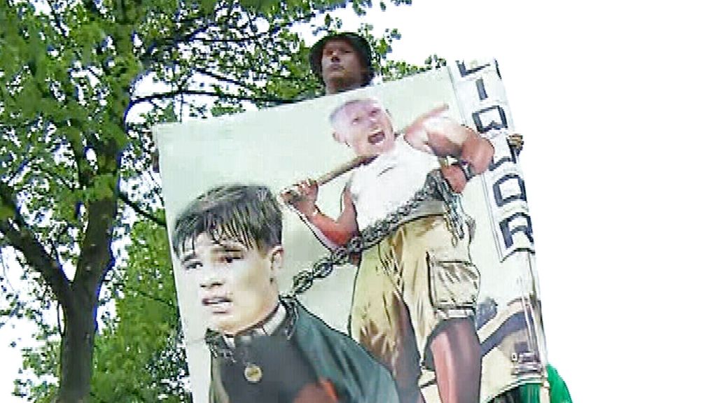 NOSEdvardsen toont een spandoek waarop Goes onder controle wordt gehouden