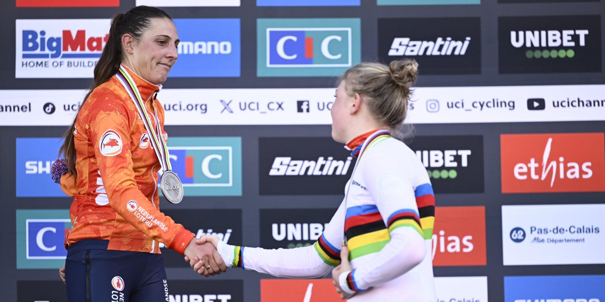 Een balende Brand feliciteert Van Empel met haar wereldtitel – foto: Fotopersburo Cor Vos