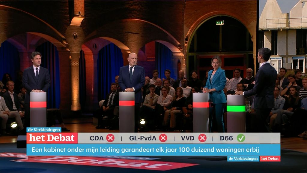 Het debatje zette het probleem goed neer. Als het over de analyse gaat – met name jongeren kunnen moeilijk een woning vinden – is iedereen het eens. Net als over het aantal van 100.000 nieuwe woningen dat er jaarlijks bij moet komen. Maar welke oplossing kies je?