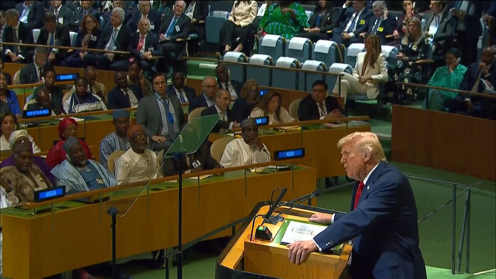 In zijn speech, die met een duur van bijna een uur ruim de ingetekende vijftien minuten overschreed, stipte Trump vervolgens nog de meest uiteenlopende thema’s aan. Zo sprak hij over de oorlogen in Gaza en Oekraïne, herhaalde hij onbewezen claims over klimaatverandering (“de grootste oplichterij ooit”) en migratie, bejubelde hij zijn eigen beleid en richtte hij zich ook nog tegen het VN-gebouw.