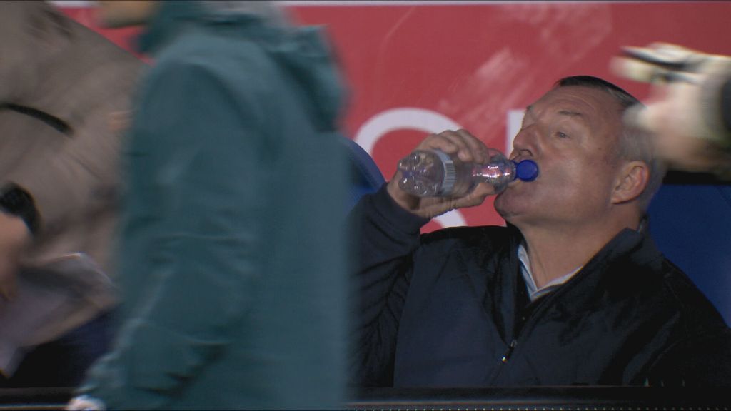 NOSJans blijft wat langer zitten in de dug-out, terwijl iedereen naar binnen gaat
