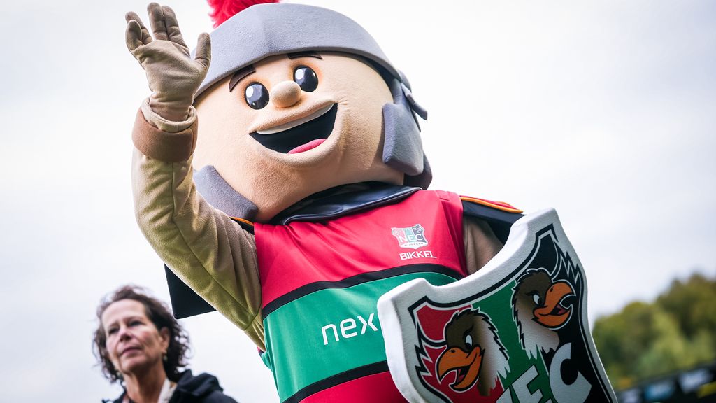 Pro ShotsNEC-mascotte Bikkel is er klaar voorNEC-TWE | Twente-supporters druppelen binnen