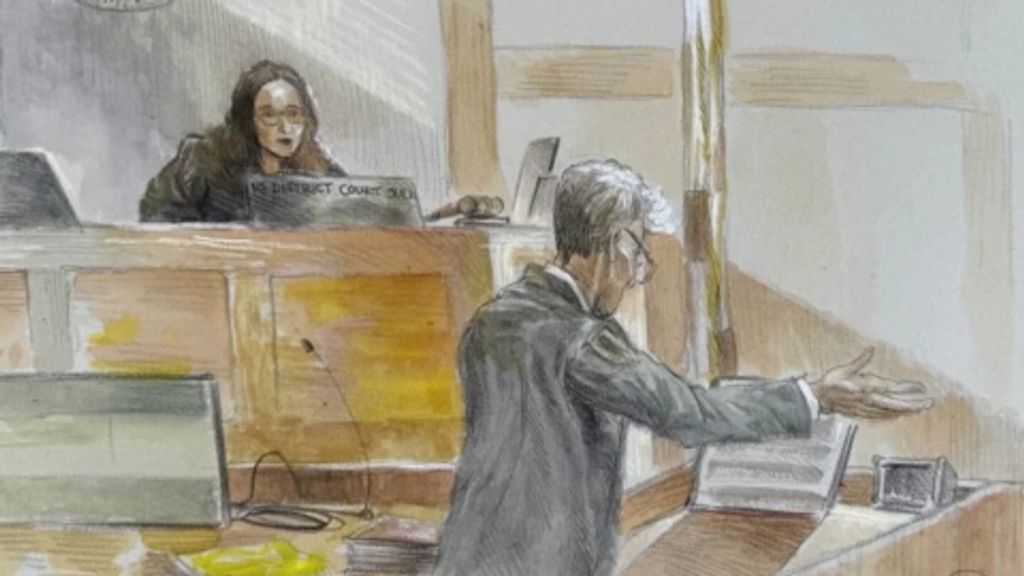 APRechtbanktekening van Routh die zijn eigen verdediging voert