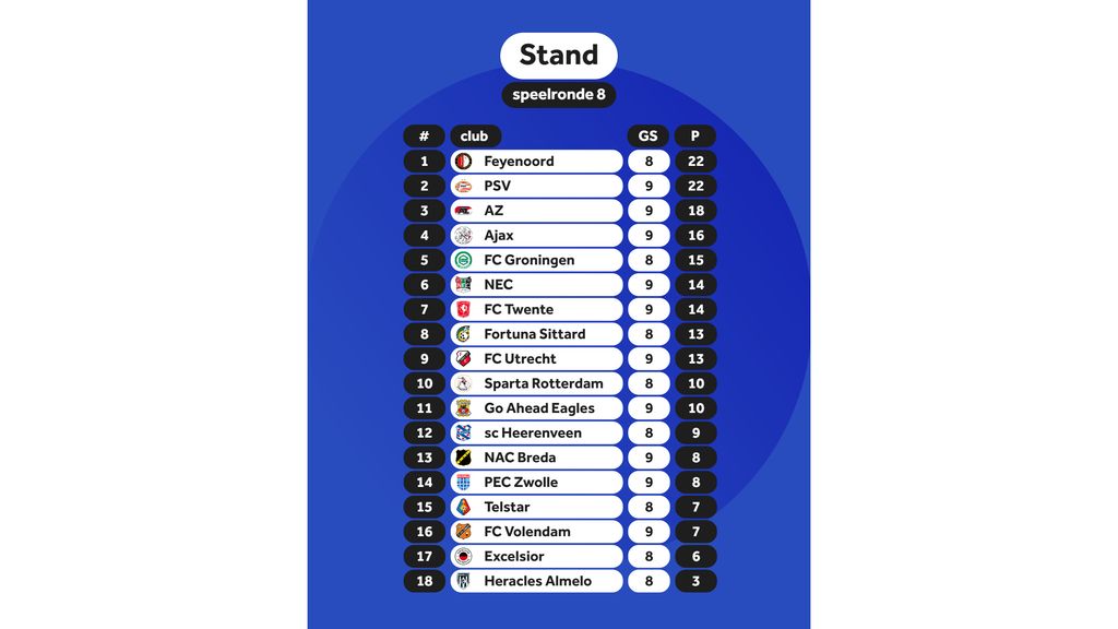 Bekijk hieronder de samenvattingen van de negende speelronde van dit eredivisieseizoen. We beginnen met de laatst gespeelde wedstrijd.