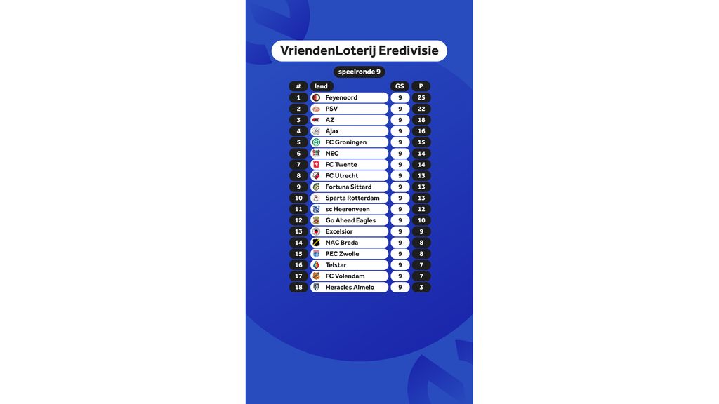 Ayase Ueda was in de eerste helft de grote man door drie doelpunten te maken. De Japanner staat na negen eredivisieduels op elf doelpunten, waarmee hij zijn voorsprong op de topscorerslijst verder uitbreidt.