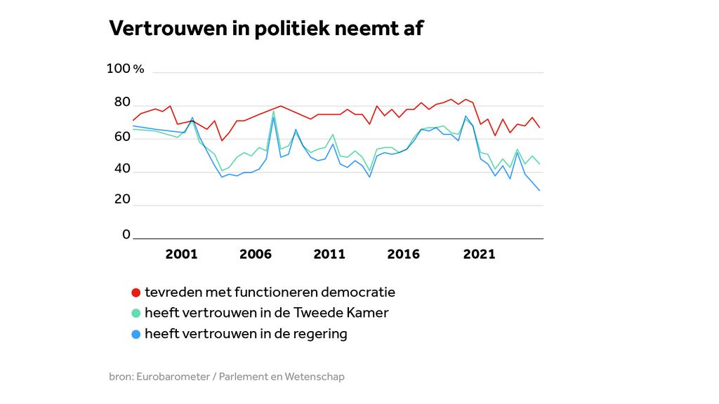 Volgens het SCP is het vertrouwen in de politiek al sinds 2021 laag. Mensen zeggen dat problemen, zoals het woningtekort, niet worden opgelost. Het vertrouwen in de politiek was twintig jaar geleden – na de moord op Pim Fortuyn – ook al laag. De onderzoekers zien dat de dip nu langer duurt.