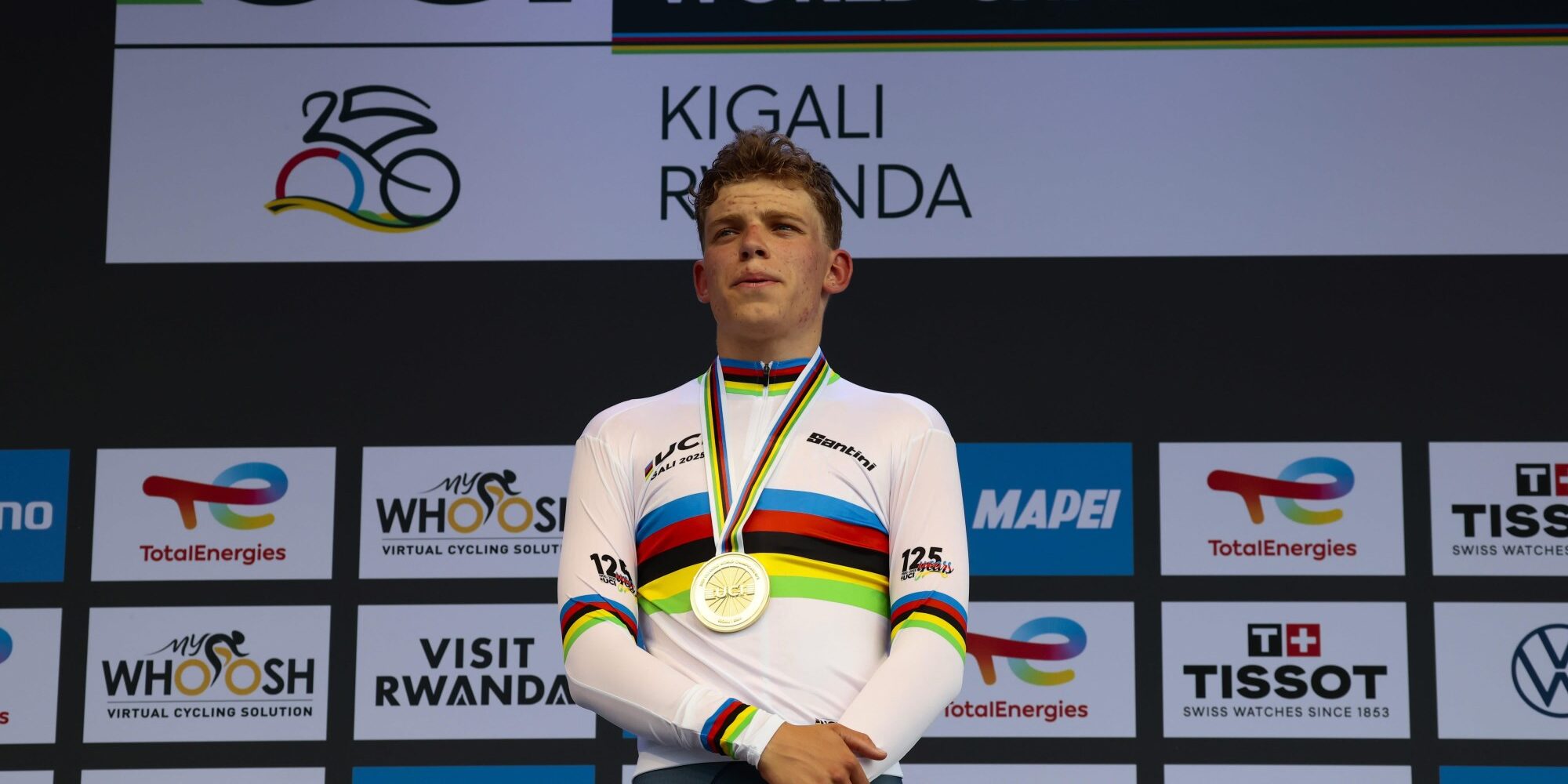 Een hoogdag voor het Nederlandse wielrennen. Na de wereldtitel van Megan Arens op het WK tijdrijden voor junioren vrouwen, snelde Michiel Mouris naar de regenboogtrui bij de junioren mannen. De 18-jarige coureur verwees Ashlin Barry en Seff Van Kerckhove naar de zilveren en bronzen medaille.