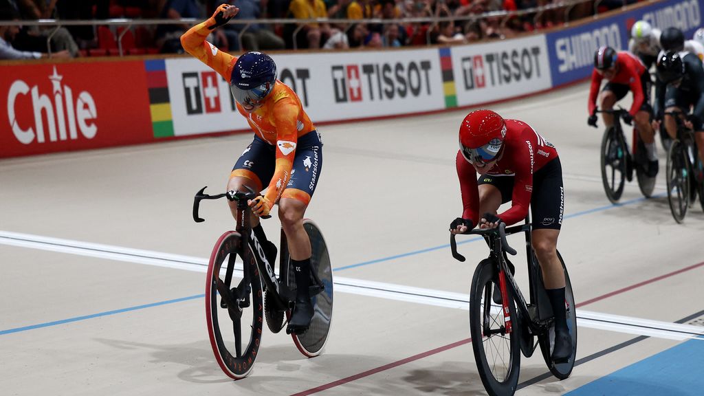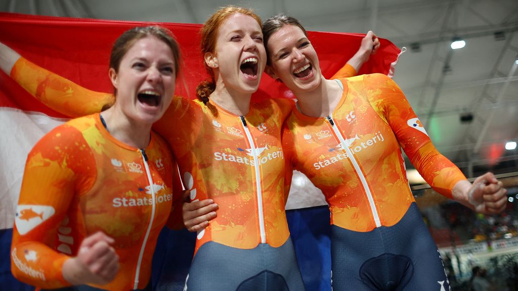 Dat deden ze ongeveer een kwartier nadat Lorena Wiebes ook al haar wereldtitel had geprolongeerd op het onderdeel scratch. De Nederlandse renster, die anderhalve week geleden nog wereldkampioen werd op het gravel, versloeg de Deense Amalie Dideriksen in een zinderende eindsprint.