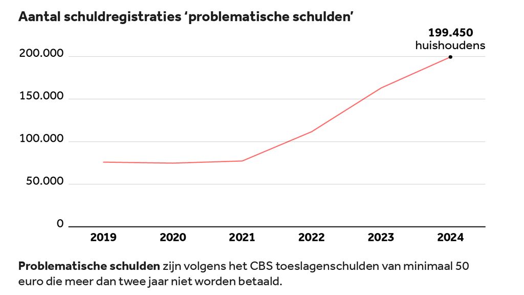 Het aantal huishoudens met langdurige toeslagenschulden is bijna verdrievoudigd sinds corona. De Dienst Toeslagen moet steeds vaker grote bedragen terugvragen, omdat achteraf bleek dat mensen te veel geld hadden gekregen. Dit gebeurde het afgelopen jaar 658.000 keer.