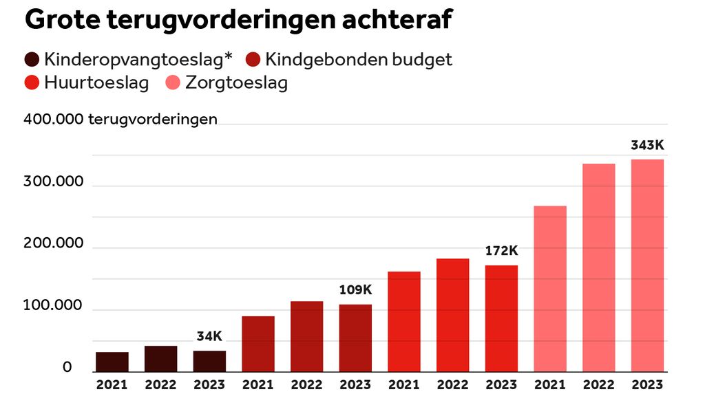 Volgens de Dienst Toeslagen komen de groeiende problemen met toeslagenschulden deels doordat steeds meer geld wordt rondgepompt in het systeem. Vorig jaar werd 21 miljard euro uitgekeerd; bijna een verdubbeling in tien jaar. Daarnaast speelt mee dat de overheid terugvorderingen tijdelijk op pauze zette tijdens corona. Dan blijven er ook meer schulden liggen.