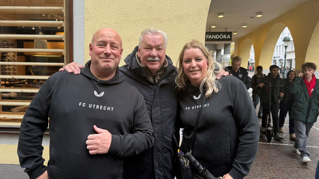 Nog meer bekenden in het wild op straat in Freiburg: FC Utrecht-eigenaar Frans van Seumeren wil best even op de foto.