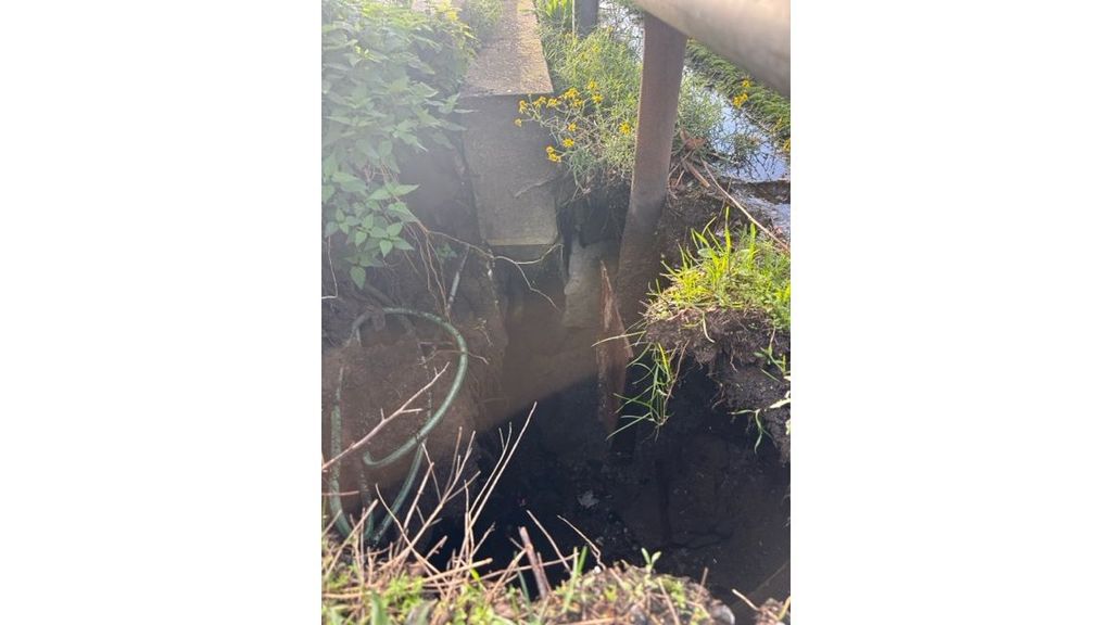 Rijkswaterstaat graaft nu het talud van de snelweg verder af tot aan de fundering van het betonnen bruggenhoofd. Daarna wordt een nieuwe wand geplaatst om te voorkomen dat het zand opnieuw wegspoelt.