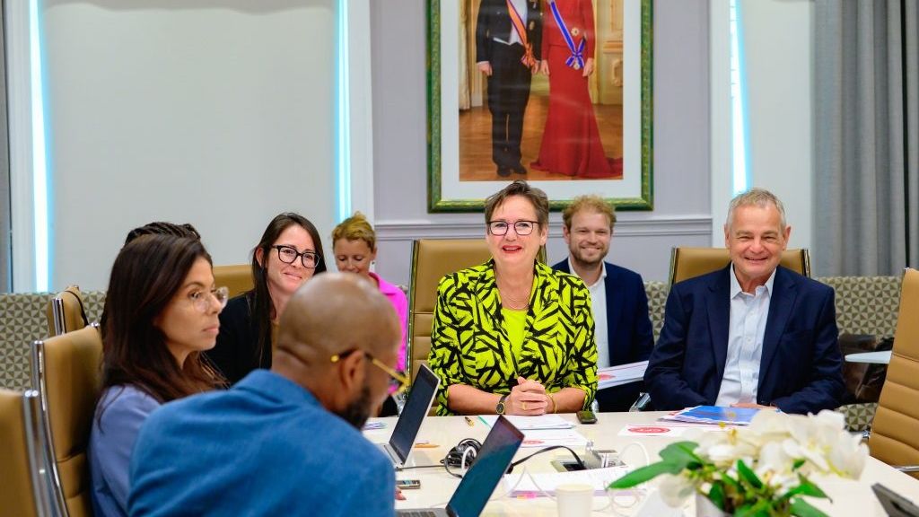 NOSLidewijde Ongering (midden) van het Cft in overleg met de regering van Curaçao