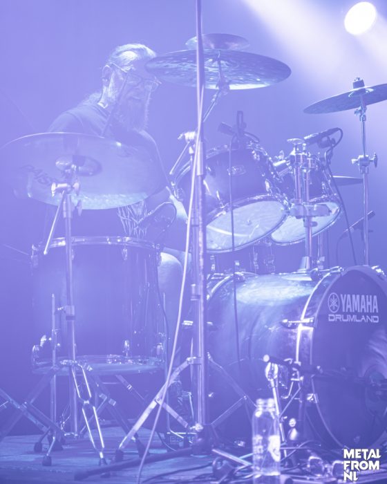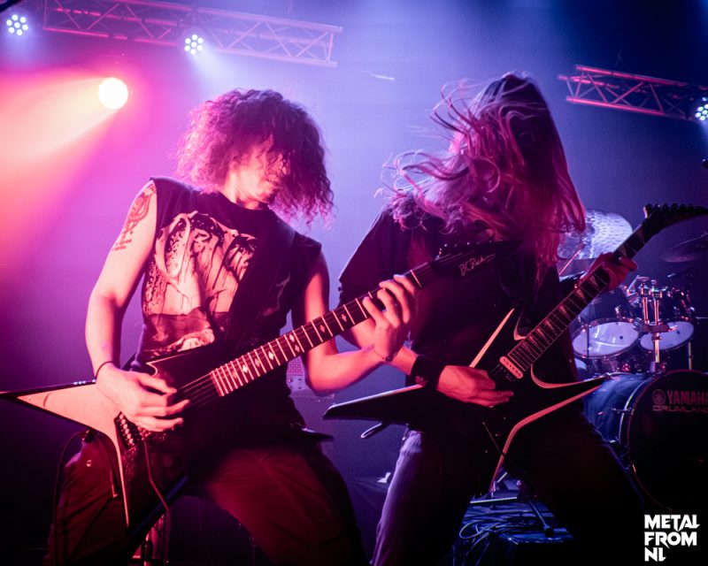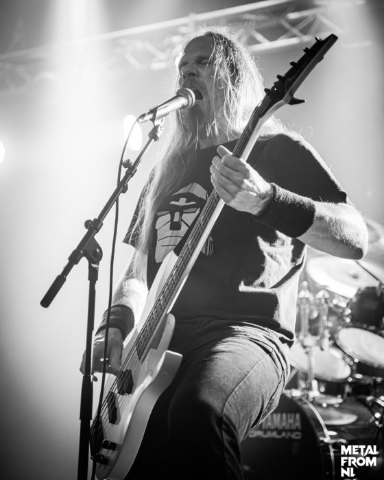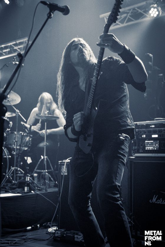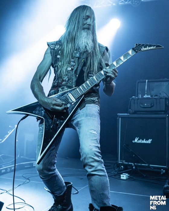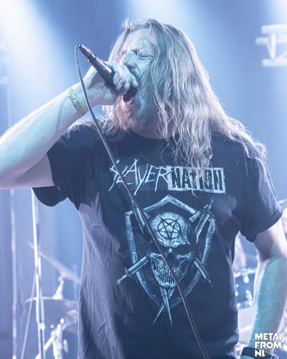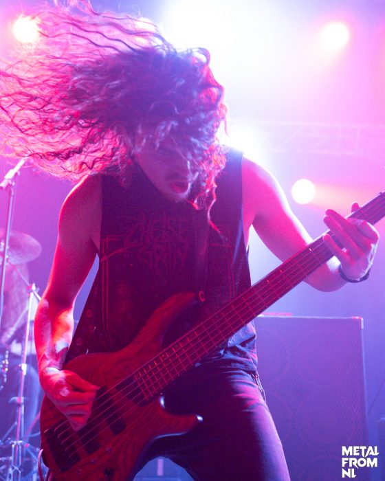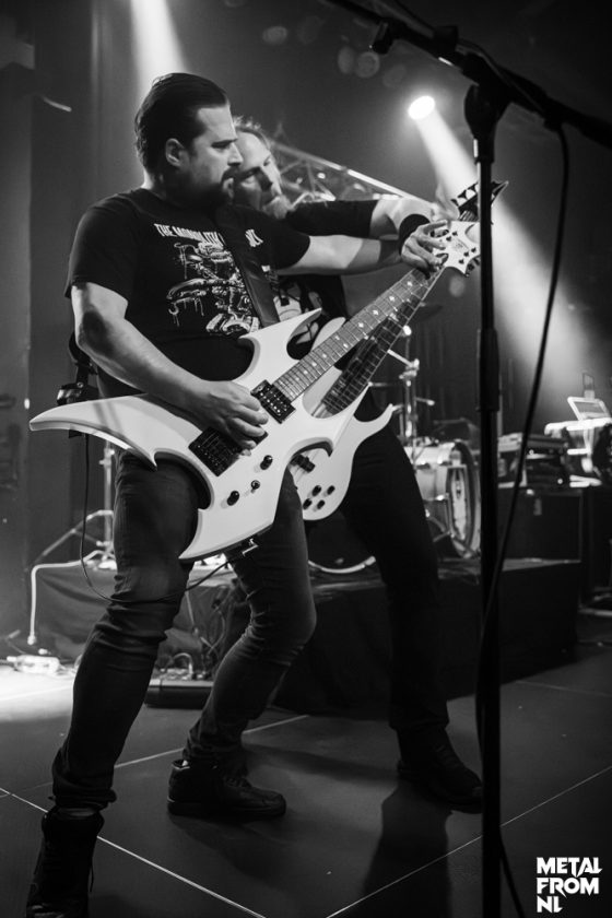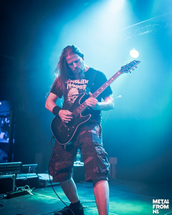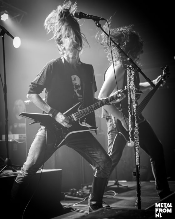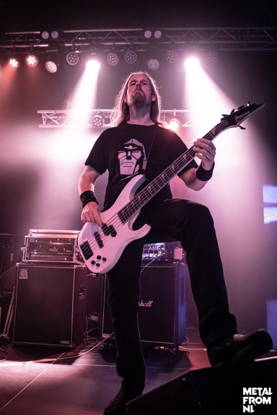 Mordkaul is de Vlaamse band van vanavond en het is duidelijk dat ze al heel wat podia versleten hebben. Helaas voor de band krijgen ze de meegebrachte lichtshow niet aan de praat en loopt de avond daardoor ook direct uit. De band is hier in de regio waarschijnlijk minder bekend dan de voorgaande bands en dat betekent dat ze het met de ‘Dutch Decease” moeten doen. Nederlands staan stil en bewegen hooguit met hun hoofd om aan te geven dat ze je muziek tof vinden. Tenzij ze je kennen, want dan is het pitten vanaf het eerste moment. Het lijkt voor de band weinig uit te maken: er wordt een hele professionele show neergezet, met glorieus headbangen van de bassist. Gaandeweg de set zien we steeds meer telefoons verschijnen die het optreden van de Vlamingen vastleggen: het wordt wel degelijk gewaardeerd! Terecht ook: het geluid is super goed, de nummers zijn sterk, zeker wanneer we bij The Widow Black wat Oosterse invloeden terug horen. De band komt binnenkort met een nieuw album, daarvan spelen ze vanavond alvast het titelnummer. Wat precies de titel was, ben ik helaas vergeten op te schrijven, maar dat ik het een vette track vond was zeker!