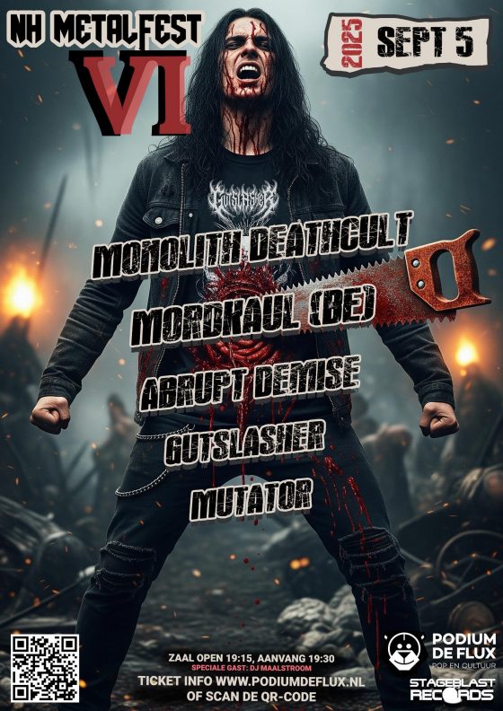 Het is inmiddels een begrip in Zaandam en omstreken: NH Metalfest in De Flux. Georganiseerd door een oude rot in het vak, Dennis Jak (Dauthuz, Nembrionic, Unlord, ex-Cardinal, ex-Consolation, ex-FuckFace), zijn we inmiddels aanbeland bij alweer de zesde editie, misschien zelfs stiekem wel de 7e keer als je de special edition meetelt. Hoe dan ook; een avond NH Metalfest staat altijd garant voor gezelligheid, en toffe bands uit de omgeving. Die omgeving wordt steeds ietsjes breder, met deze keer ook een Vlaamse band op het programma. Wij waren erbij en deden verslag!