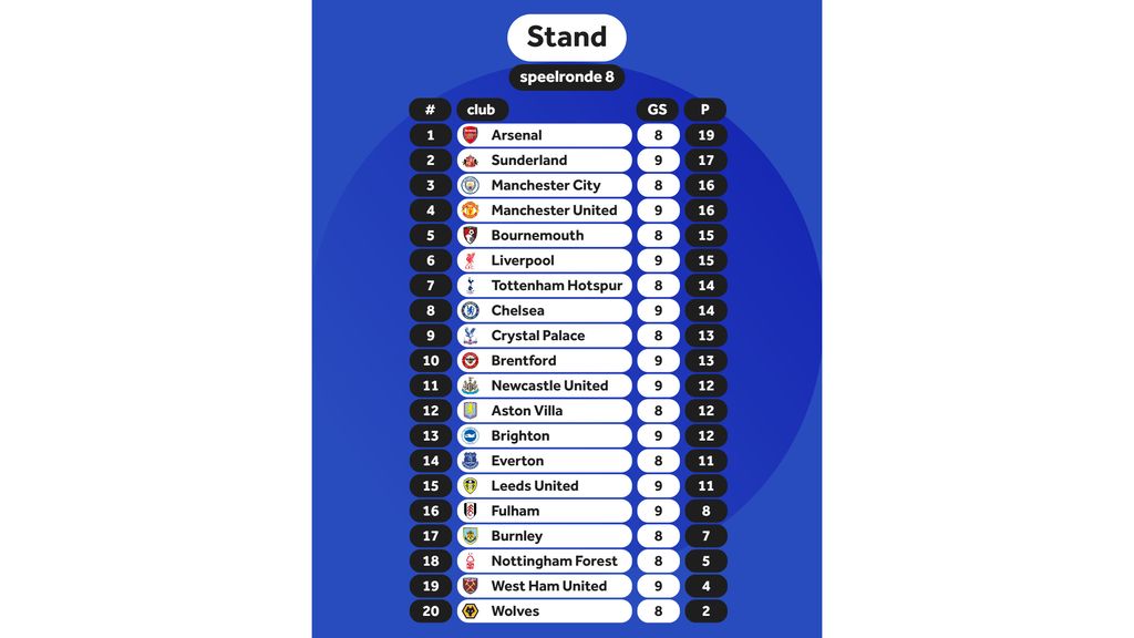 Door de nederlaag verliest Chelsea de aansluiting met de bovenste plekken in de competitie. Sunderland staat na de zege verrassend op de tweede plek, maar de concurrentie moet deze speelronde nog in actie komen.