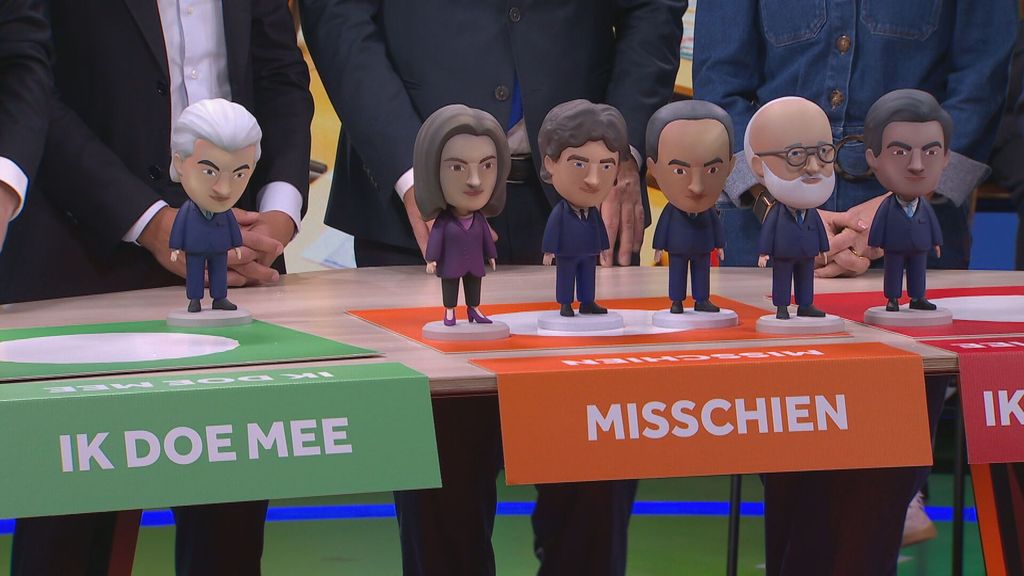Voor de speciale uitzending waren Geert Wilders (PVV), Frans Timmermans (Groenlinks-PvdA), Dilan Yesilgöz (VVD), Henri Bontenbal (CDA), Rob Jetten (D66) en Eddy van Hijum (NSC) uitgenodigd. “We hebben gekeken naar het aantal stoelen dat ze nu in de Tweede Kamer hebben en naar hoeveel stoelen ze na deze verkiezingen lijken te gaan krijgen”, vertelden presentatoren Joris Marseille en Milou Stoop.