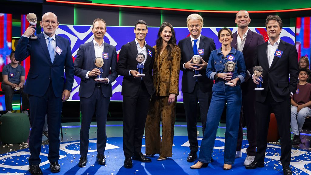 Voor de speciale uitzending waren Geert Wilders (PVV), Frans Timmermans (Groenlinks-PvdA), Dilan Yesilgöz (VVD), Henri Bontenbal (CDA), Rob Jetten (D66) en Eddy van Hijum (NSC) uitgenodigd. “We hebben gekeken naar het aantal stoelen dat ze nu in de Tweede Kamer hebben en naar hoeveel stoelen ze na deze verkiezingen lijken te gaan krijgen”, vertelden presentatoren Joris Marseille en Milou Stoop.